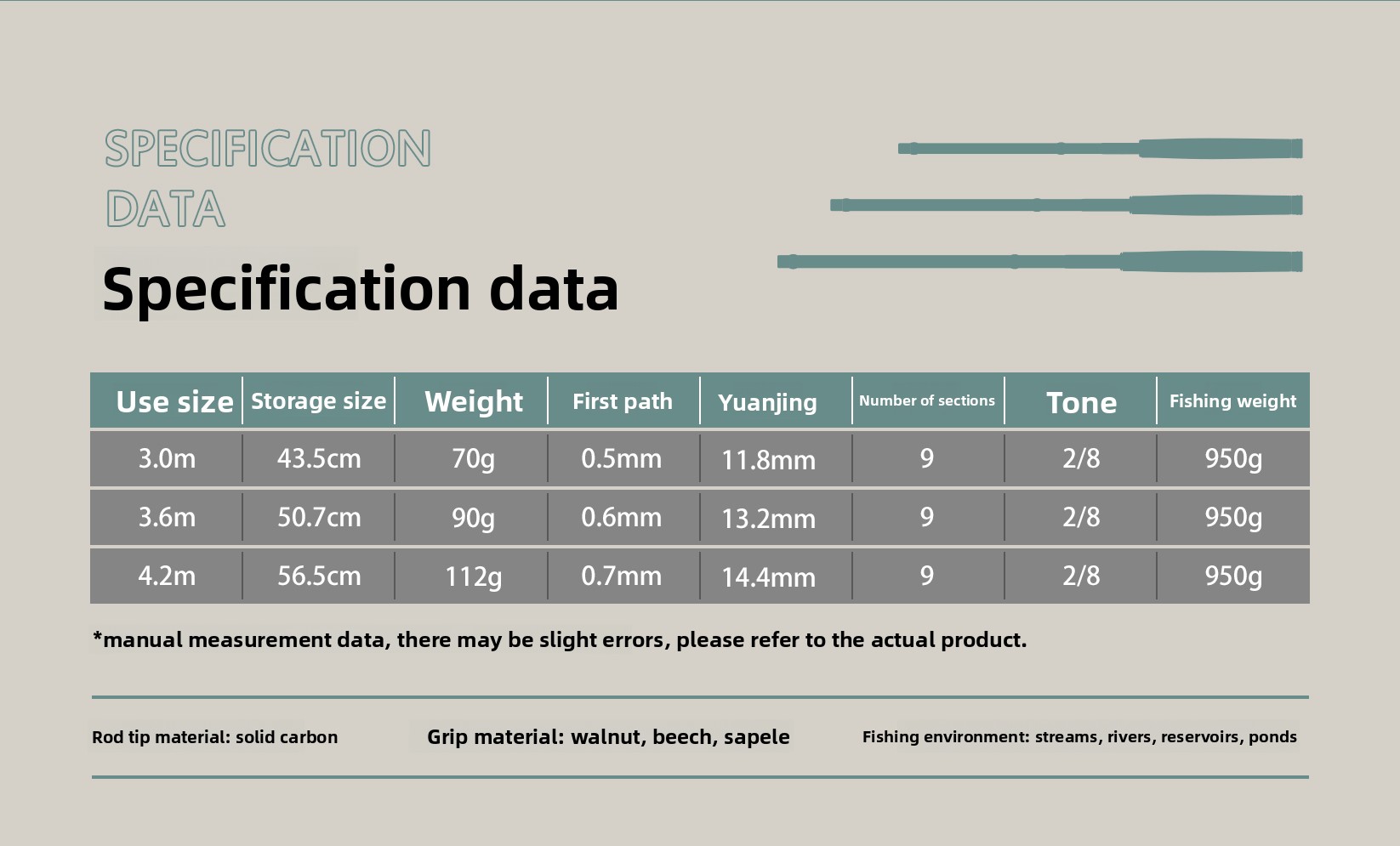 Product specifications:3.0 meters single rod